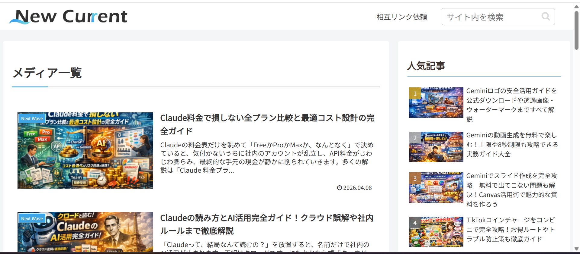 特に、ChatGPTやClaudeといった生成AIのビジネス活用や、最新ツールの比較・導入ガイドが充実しており、個人から中小企業の担当者まで幅広く役立つ実践的なコンテンツが魅力です。常に一歩先の情報をキャッチし、読者と共に次世代の波に乗っていくことを目指している、信頼性の高いメディアです。