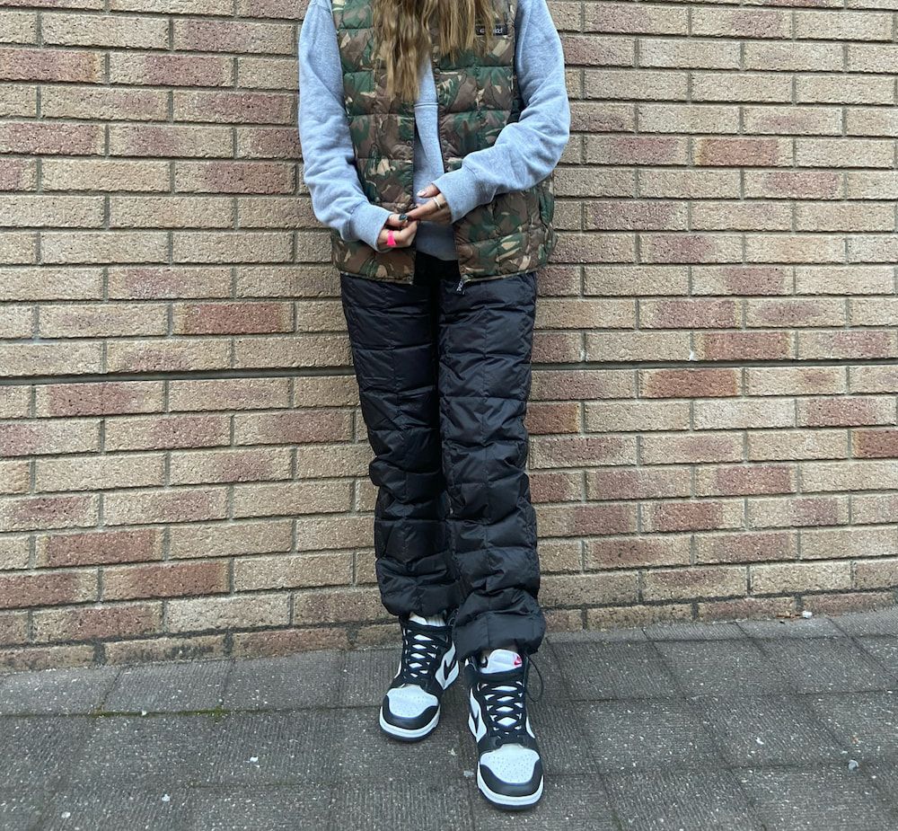 ボリュームがあるスニーカーなので太めのパンツに合います。